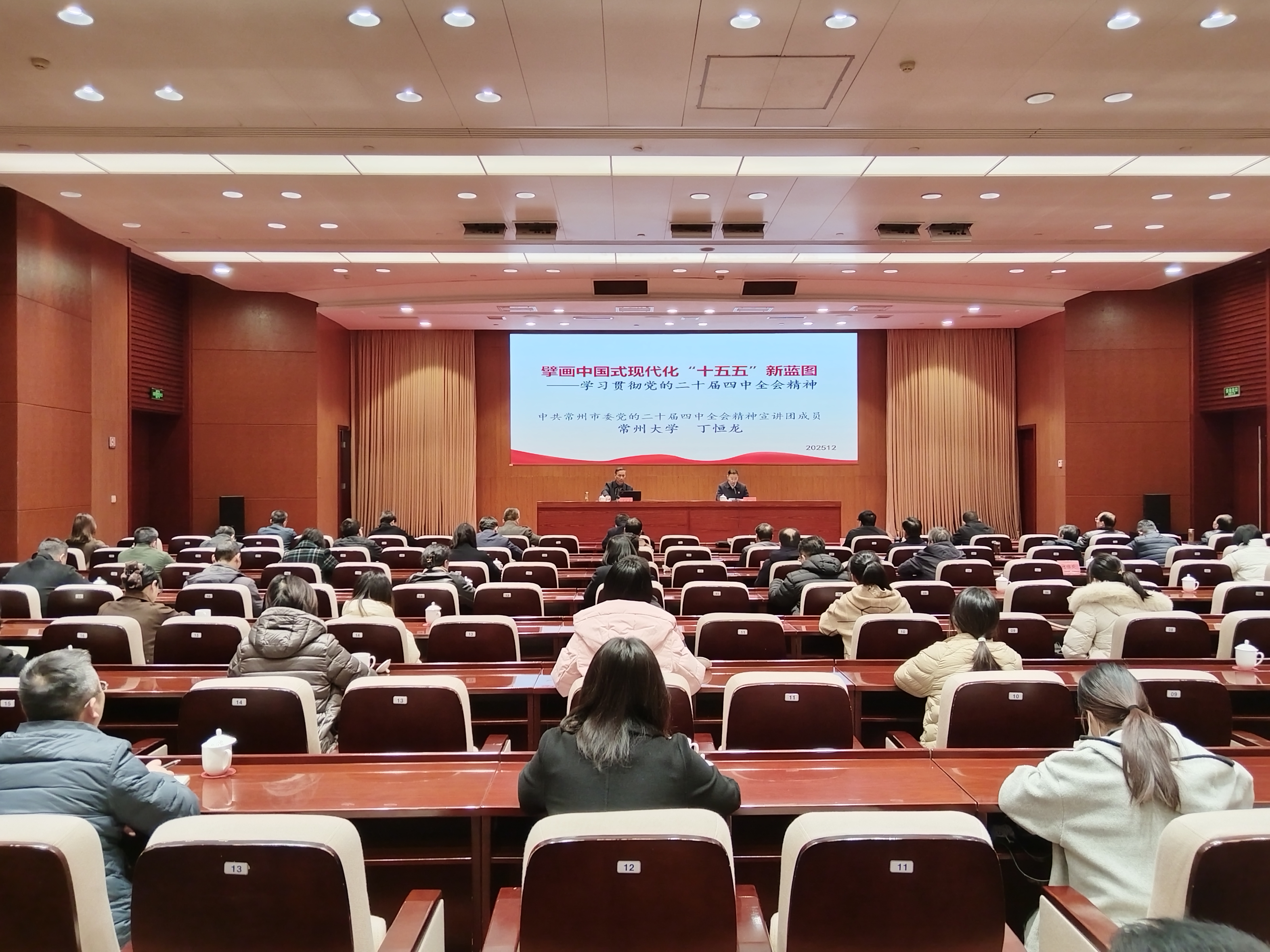根据常州市委统一部署,12月4日,市审计局举行学习贯彻党的二十届四中全会精神市委宣讲团报告会。市委宣讲团成员、常州大学教授丁恒龙作宣讲报告。局党组书记、局长黄澍主持报告会。