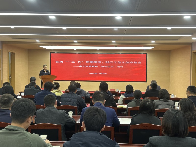12月9日下午,市工信局举行纪念弘扬“一二九”爱国精神,践行工信人使命担当”集体政治生日会,以庄重温馨的仪式共同庆祝,为第四季度入党的41名党员干部过“政治生日”。在热烈氛围中重温入党初心,凝聚奋进力量,让“政治生日”成为党员干部成长进步的新起点。